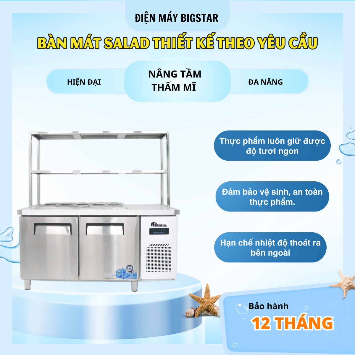 Nếu quý khách có nhu cầu tư vấn cũng như mua bàn mát salad kèm kệ inox, xin vui lòng liên hệ ngay với Điện máy BigStar qua số Hotline: 0911.005.012. Đội ngũ nhân viên tại Điện máy BigStar luôn hỗ trợ quý khách tận tình, tư vấn chi tiết nhất. Điện máy BigStar hân hạnh được phục vụ quý khách!