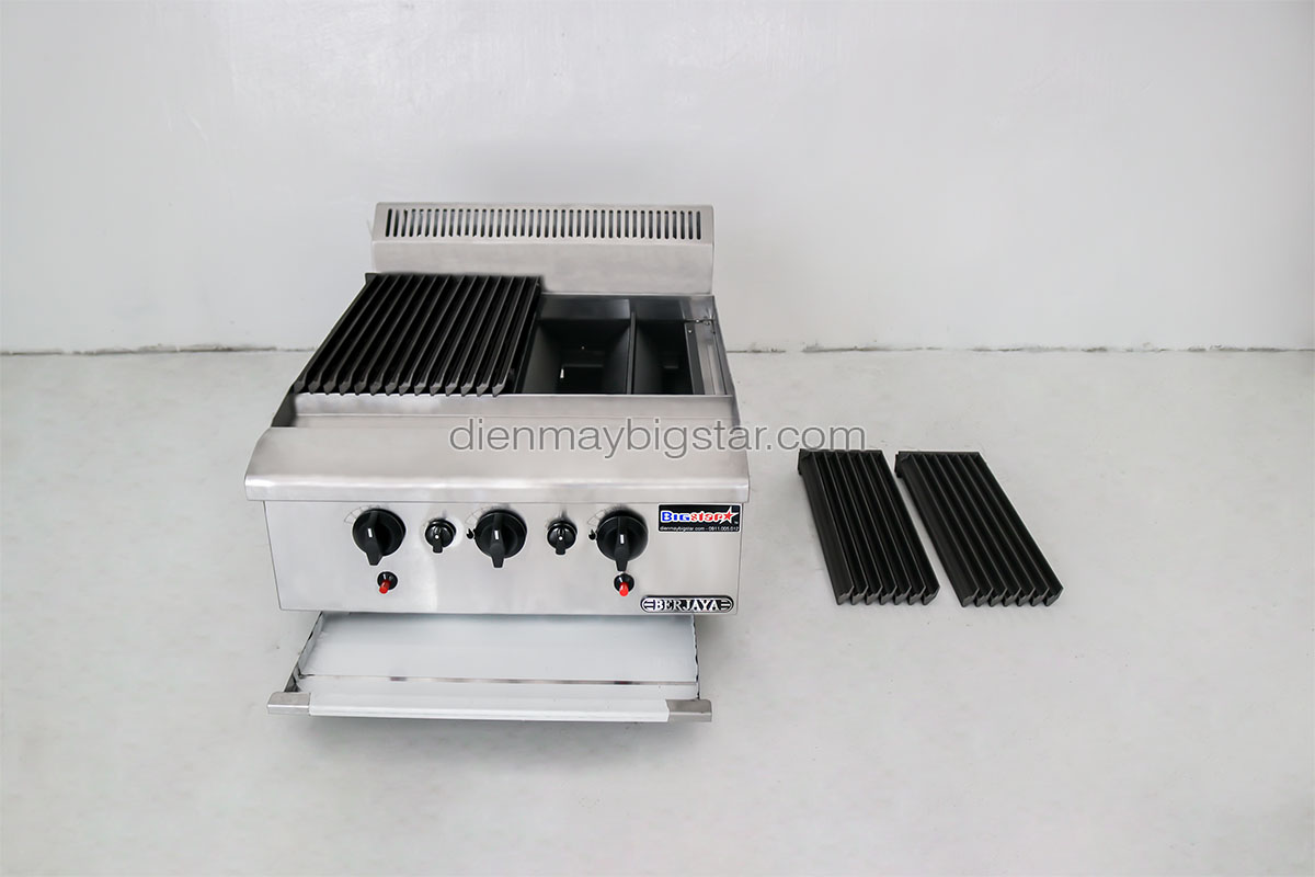 Bếp nướng 3 họng gas Berjaya CB3B-17 được nhập khẩu nguyên chiếc từ Malaysia nên kiểu dáng và thiết kế mang phong cách sang trọng, tinh tế. Với công suất tiêu thụ gas 45000 Btu/Hr nên có thể nướng một lúc với khối lượng lớn thực phẩm. Phù hợp sử dụng cho các quán ăn, nhà hàng, các bếp ăn công nghiệp….